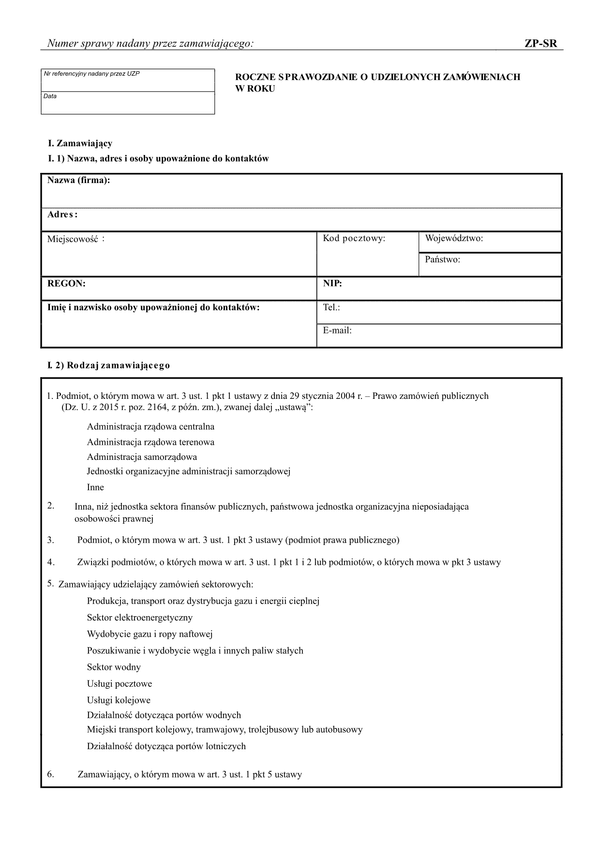 Roczne sprawozdanie o udzielonych zamówieniach jest częścią rozporządzenia Ministra Rozwoju i Finansów z dnia 15 grudnia 2016 r. w sprawie informacji zawartych w rocznym sprawozdaniu o udzielonych zamówieniach, jego wzoru oraz sposobu przekazywania. Roczne sprawozdanie o udzielonych zamówieniach przekazuje się Prezesowi Urzędu Zamówień Publicznych drogą elektroniczną.
